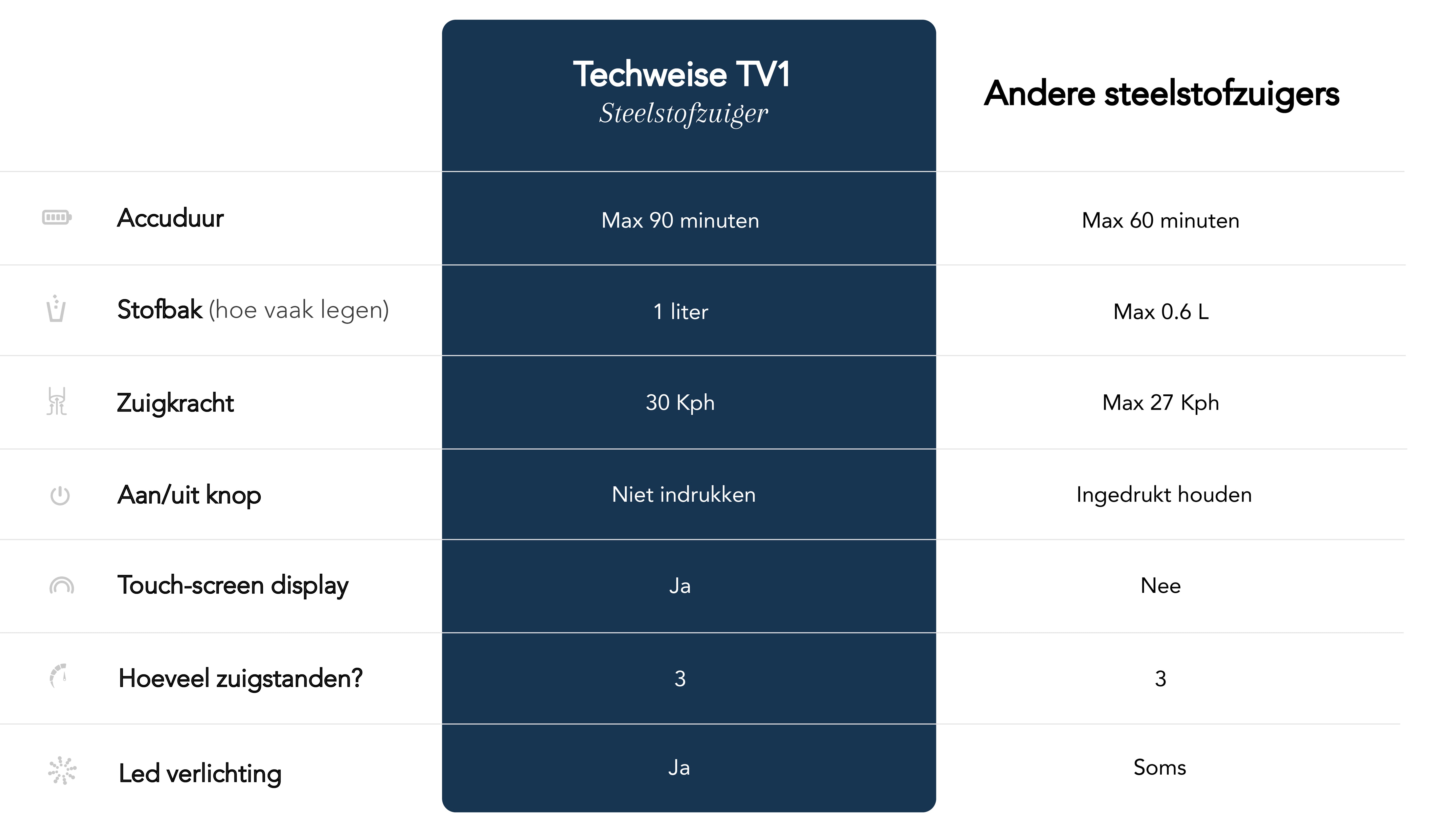 Laat je niet langer beperken door snoeren en zware stofzuigers. Ervaar de vrijheid en efficiëntie van de Techweise TV1 draadloze steelstofzuiger en geniet van een schoner huis met minder inspanning.